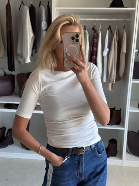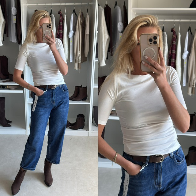 Bawełniana bluzka z rękawem 3/4 i dekoltem w łódkę. Jest zarówno elegancka, a również pasująca do casualowych stylizacji. Bardzo przyjemny w dotyku materiał zadba o Twoją codzienną wygodę. Dostępna w kolorze: czekoladowym, beżowym, białym, czarnym.