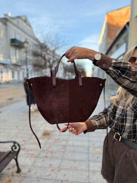 Torebka skóra naturalna bordo zamsz MAŁA