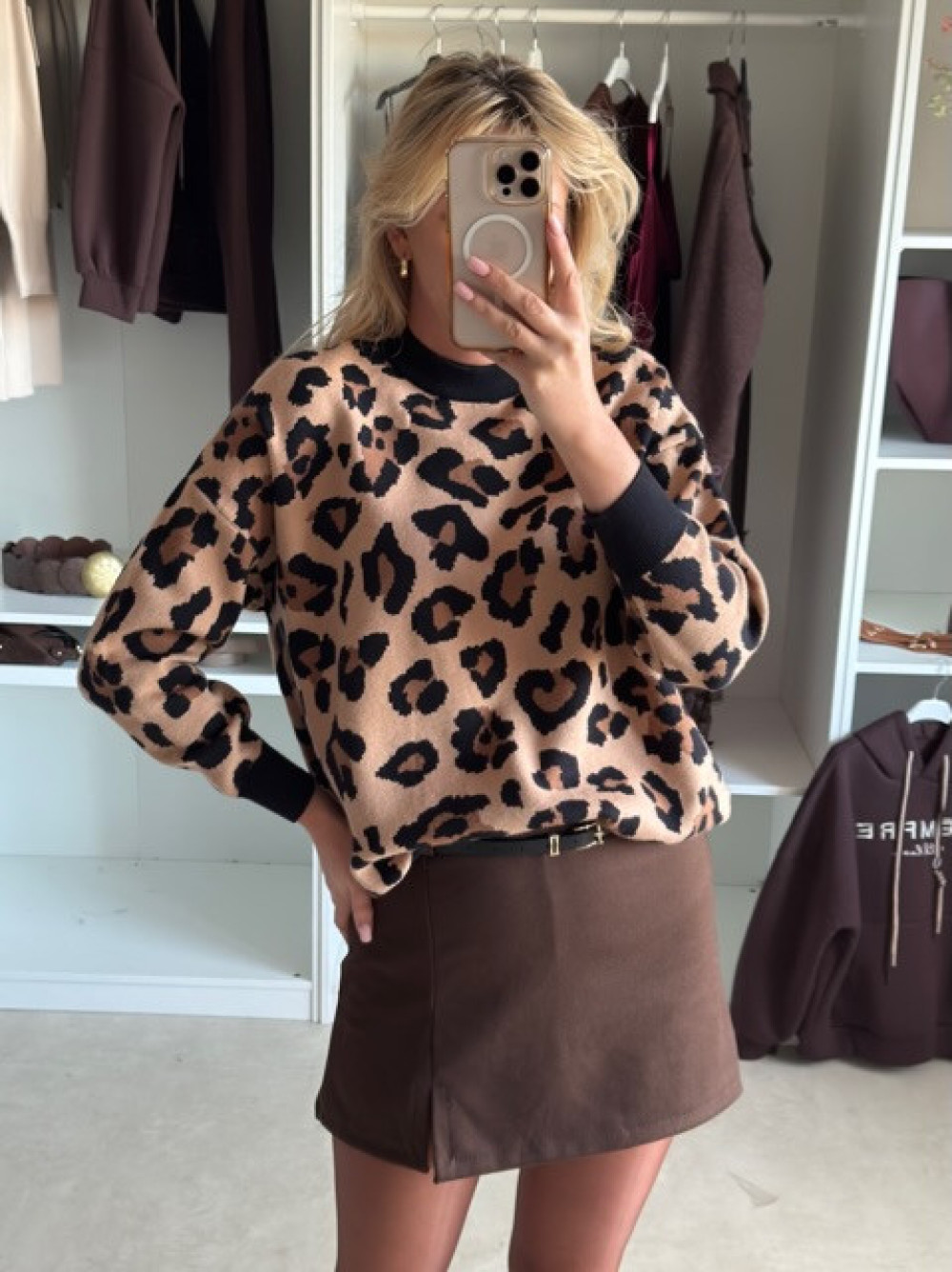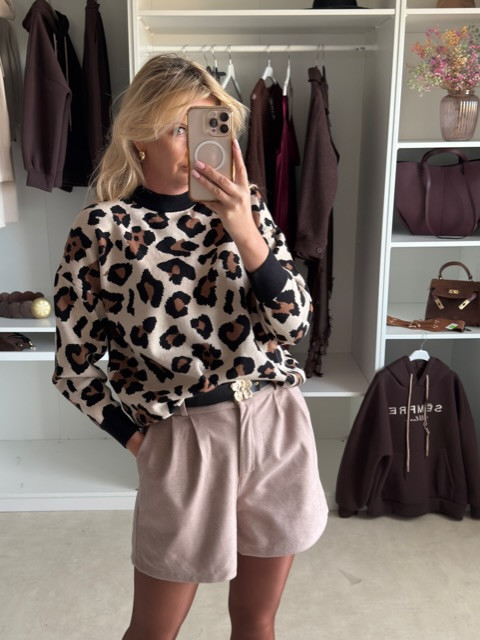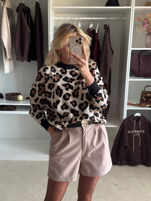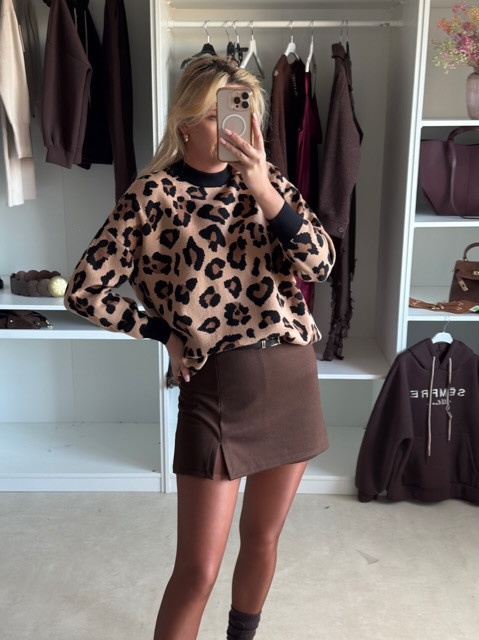 Stylowy sweterek w panterkę to strzał w dziesiątkę dla wszystkich pewnych siebie, przebojowych kobiet. Dodaje pazura każdej kreacji, jednak to nie jedyna jego zaleta. Uszyty jest z przemiłej w dotyku, solidnej dzianiny, gwarantującej komfort, ciepło i trwałość. Dostępny w dwóch kolorkach- jasnym beżu oraz camel.