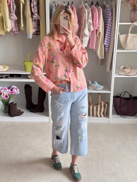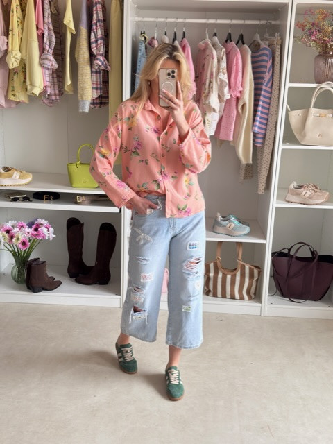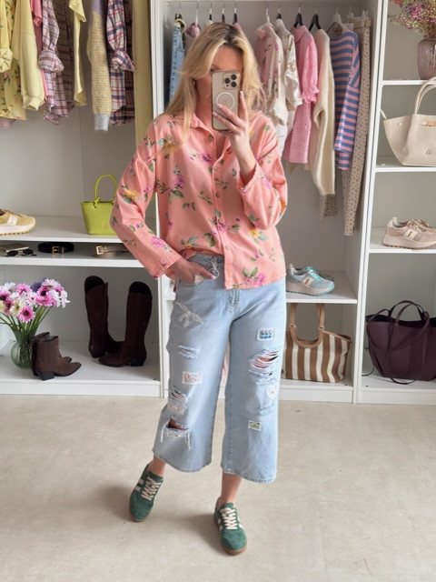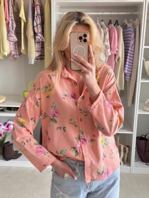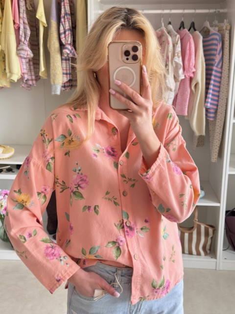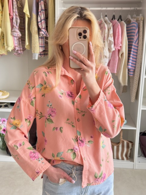 Sztruksowa koszula w kwiaty koral